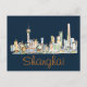 A skyline de Shanghai tirada na tinta e em lápis coloridos.