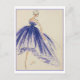 Este cartão-postal é uma reprodução de um design de moda/esboço de um vestido/vestido de noite roxo de Marie-Louise Carven. Na coleção Musée de la Mode de la Ville de Paris, França.