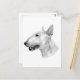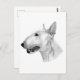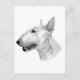 Um desenho detalhado a lápis de um Touro Terrier pelo artista Danguole Serstinskaja, mostrando sua forma distintiva de cabeça com um focinho alongado, orelhas apontadas e olhos expressivos. O desenho enfatiza a estrutura muscular do cão e o casaco suave, com sombreamento macio proporcionando profundidade e textura. O enfoque no perfil da Bull Terrier, realçando as suas características únicas e as suas características de raça.