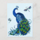 Cartão Postal Design Clássico de Peacock e Dragonfly