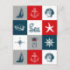 Design com temas náuticos, com marinho e decoração aquática, em quadrados brancos, vermelhos, azuis e cinzas sem costura