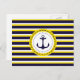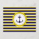 Cartão Postal Design de Âncora Marinho Náutico Azul Estrias Ama