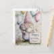Esta imagem emocionante apresenta um gnomo encantador vestido com um chapéu festivo, segurando um buquê de flores coloridas e um cartão que diz "Feliz Aniversário Mamãe". Rodeado por balões alegres e aninhado em um jardim caprichoso, este gnomo adorável irradia uma sensação de calor e alegria.