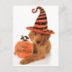 Ouro Bonito Puppy com chapéu de bruxa com jack-o-lanterna