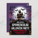 Faça o tom perfeito para sua festa de Halloween com este convite de casa assombrado. Apresentando uma mansão escura e assombrada sob uma lua de cheio, jack-o-lanternas brilhantes, morcegos voadores, e árvores nebulosas, este convite é ideal para um evento fantasmagórico e arrepiante. Personalize com os detalhes do seu partido e convide convidados para uma noite de diversão espetacular