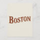 Um design de estilo vintage com a palavra "Boston" em uma fonte rústica e angustiada com fundo texturizado. A paleta colorida é quente e convidativa, com tons de marrom e creme.