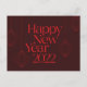 Design gráfico vibrante, moderno e legal de dizer "Feliz ano novo 2022" com formas geométricas na abstração dos ornamentos de Natal / Ano Novo. Arte do vetor gráfico simples, mínima, vibrante e moderna a vermelho.