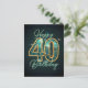 Cartão Postal Deslumbrante Aniversário de 40 Anos em Azul Turque