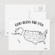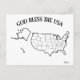 Cartão Postal DEUS ABENÇOE DOS EUA com o esboço dos EUA