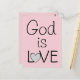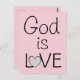 Este é um belo cartão postal de rosa claro com uma bela mensagem impressa em letras grandes: "Deus é o amor"... A palavra AMOR tem um coração cinza bonito no lugar da letra O. Belo cartão postal para enviar a todos que ama!