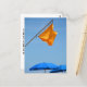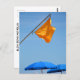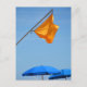 Cuidado! A bandeira amarela brilhante alerta um para abrandar e relaxar por um tempo sob um guarda-chuva de praia com um céu azul claro e brisa marinha e desfrutar deste cartão postal fotográfico. Esta é a fotografia original da praia por JLW_PHOTOGRAPHY.