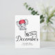 Adorável elefante bebê vestindo boné vermelho com pom branco, tipografia "Devido em dezembro" e modelo para mensagem especial anunciando gravidez.