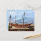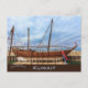 Este cartão postal apresenta uma vista de um dhow tradicional no Kuwait. De acordo com a Wikipedia, "é o nome genérico de uma série de embarcações tradicionais com um ou mais mastros com velas settee ou às vezes velas latinas. Normalmente com cascos longos e finos, os dhows são navios mercantes usados principalmente para transportar itens pesados, como frutas, água doce ou outras mercadorias pesadas". Crédito da foto: Nishat A. Khan, 2014.