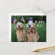Feliz 4 de julho, EUA! Mostre seu espírito patriótico com este cartão postal fofo de golden retriever! O design apresenta uma fotografia de dois cães celebrando o Dia da Independência com bandeiras vermelhas, brancas e azuis, gravata borboleta e faixas na cabeça. O texto é totalmente personalizável.