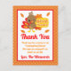 desenho de Ação de Graças de peru fofo com fundo de bolinhas laranja.
