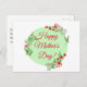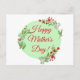 Padrão verde com folhas e flores vermelhas com cor d'água verde Cartão postal. Tipografia verde moderna. Desejos perfeitos para Mães por Casamento.