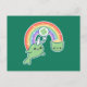 Super giro voando narval com arco-íris brilhante, shamrock sortudo e pote de ouro.