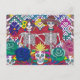 Dia dos Mortos 8. Casal de esqueletos de mãos dadas contra um fundo de coração vermelho.
