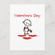 Cartão postal mostra uma figura de palito fofa mas triste com um coração partido, segurando uma flor murcha, além das palavras "Dia dos Namorados". Adicione texto no verso.