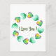 Cartão Postal Dia dos Namorados Romântico Fofo Aquarela Verde