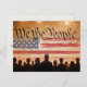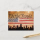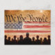 Nós, as Pessoas, sob a vibrante bandeira americana, nos unimos para honrar a Constituição dos Estados Unidos, enquanto silhuetas de uma multidão cativa celebram o brilhantismo dos fogos de artifício. O texto no verso é editável.