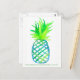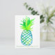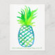 Um cartão de posto em homenagem ao Dia Internacional do Abacaxi, no dia 27 de junho, com um abacaxi estilizado pintado com aquarela em vários tons de verde brilhante e azul com um padrão de latência.
