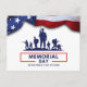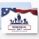 Este cartão-postal comovente captura a essência do Memorial Day com uma silhueta poderosa de soldados em várias posturas de ação, colocada contra o pano de fundo das estrelas e listras da bandeira americana. Estampado com as palavras "MEMORIAL DAY - LEMBRE-SE E HONRE" em uma fonte ousada e enfática, o design é uma homenagem à bravura e sacrifício do pessoal militar. O detalhe da bandeira ondula graciosamente no topo, dando um sentido de movimento e patriotismo a este memento significativo. Este cartão-postal serve como uma reverência respeitosa aos homens e mulheres que serviram ao seu país, perfeito para enviar mensagens sinceras de gratidão e lembrança neste feriado solene.