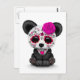 Cartão Postal Dia rosa do crânio do açúcar morto Panda em branco