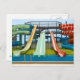 Fotografia de várias lâminas de água coloridas num parque aquático abandonado
