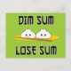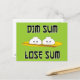 Uma imagem de desenho animado de dois bolinhos Dim Sum, um feliz e um triste, em um prato com pauzinhos e a frase "Dim Sum, Lose Sum" O fundo pode ser alterado, clique em "Personalize" e depois em "Editar" e "Fundo" e escolha a cor.