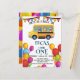 Cartão Postal Dino divertido volta à escola ônibus menino aniver