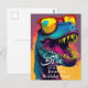 Cartão Postal Dinosaurio Azul T-Rex Salvar data