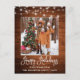 Moderno Diversão Caligrafia Script Feliz Feriado Família Foto Cartão de Férias - País Rústico Madeira com Luzes de Corda