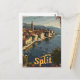 Uma ilustração cativante de Split, uma cidade histórica na costa Dalmácia da Croácia. A design mostra a antiga arquitetura romana, as impressionantes visões costeiras, e ruas vivas que definem esse belo destino. Com uma estética nostálgica e retrô, a trabalho de arte destaca a rica herança de Split e o charme mediterrânico, convidando os espectadores a experimentar seu alento eterno.