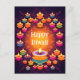 O cartão-postal retrata uma cena festiva de Diwali, centrada em torno de um círculo radiante de Diyas (lâmpadas de óleo tradicionais) que forma uma estrutura luminosa para uma saudação quente de Diwali. Cada Diya brilha com uma luz de ouro, lançando uma iluminação suave e oscilante que melhora a atmosfera geral de celebração e calor. O fundo desta trabalho de arte é um roxo profundo e rico, fornecendo um contraste impressionante com o brilho brilhante e alegre do Diyas. Esse pano de fundo escuro adiciona um toque de elegância e sofisticação ao cenário, ao mesmo tempo que destaca as cores vívidas e detalhes intrincados do Diyas. As cores utilizadas nessa trabalho de arte são ousadas e expressivas, valorizando o espírito festivo de Diwali. O brilho quente do Diyas contrasta lindamente com o fundo roxo escuro, criando um equilíbrio visual harmonioso. Cada matiz é cuidadosamente selecionada para contribuir para a vibração e energia globais da cena. As formas na composição são robustas e bem definidas, adicionando ao impacto visual ousado do trabalho de arte. O arranjo circular do Diyas cria um sentido de unidade e integridade, simbolizando a natureza cíclica da vida e a celebração contínua da luz sobre a escuridão. De um modo geral, este cartão-postal é uma mistura cativante da arte digital moderna e dos elementos culturais tradicionais, captando perfeitamente a essência festiva de Diwali.