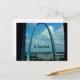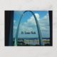 Um cartão postal com uma foto do Arco de St. Louis com o rio Mississippi fluindo nas proximidades.