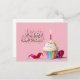 Cartão postal do Bolo de Aniversário Cor-de-Rosa feliz.