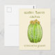 Cartão postal em aquarela do cacto barril dourado em um cartão postal. Nome latino echinocactus grusonii.