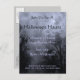 Um convite postal personalizado com um fundo de um céu assustador de Halloween com árvores negras ao longo de uma estrada assombrada, corvos góticos com uma névoa azul. Personalize-o para alterar fontes, cores, dimensionamento, texto e muito mais, e até salve seu design para mais tarde.