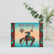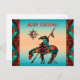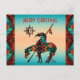 Personalize este cartão postal de Natal "Único" Fim da Trilha! Ele apresenta um índio americano Fim da Trilha e um cavalo em um fundo de pôr do sol turquesa e laranja... Cercado por uma borda turquesa, laranja e preta!