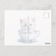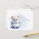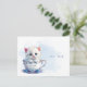 Cartão postal do gatinho no copo com flores azuis