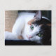 Cartão postal do gato com posto arranhado.