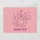 Gato cor-de-rosa desenhado à mão em desenho animado tocando violino. Texto personalizado.