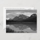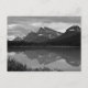 Um lago canadense reflete as montanhas e a paisagem, em preto e branco.