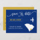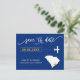 Você escolheu um lugar especial para o seu casamento. Agora é hora de celebrá-lo com este cartão postal de data de reserva, apresentando um mapa em silhueta e um pequeno avião rumo ao seu destino. Para mover o coração para o local do seu casamento, clique em personalizar e depois em "personalizar ainda mais".