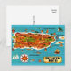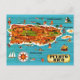 Um maravilhoso mapa ilustrado vintage de Porto Rico com os nomes dos lugares em espanhol reaproveitados em um cartão postal.