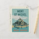Para todos os amantes do Santo Mont Michel ou para aqueles que gostam de compartilhar suas viagens com seus amigos. Cartão postal retrô com a ilustração original do Mont Santo Michel.