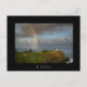 Cartão-postal de um arco-íris e algumas nuvens de chuva de cinzas escuras sobre o farol de Kilauea em um promontório no Oceano Pacífico na costa norte de Kauai, Havaí, EUA com uma fronteira negra e o texto: 'Kauai'.
