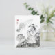 Arte original por Ren Adams. Arte original de pintura com pincel chinês por Ren Adams, renderizada de forma nítida em um cartão para todas as ocasiões. Um samurai do período Edo se prepara para desembainhar sua espada. Ele usa um chapéu de viagem de palha e calças hakama fluidas.