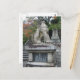 Cartão postal da Estátua do Leão Guardião Japonês. Aqui está um dos dois leões guardiães encontrados perto da entrada do templo Kiyomizu-dera no Japão. Esculpidos de pedra, esses leões icônicos são encontrados em todas as arquiteturas históricas do Japão. O próprio Kiyomizu-dera é um templo budista em Quioto, e remonta ao ano 798. Os edifícios atuais foram construídos em 1633 quando foi declarada uma restauração. Kiyomizu significa água limpa, ou água pura, quando traduzida. Este nome vem da cascata encontrada dentro do templo.